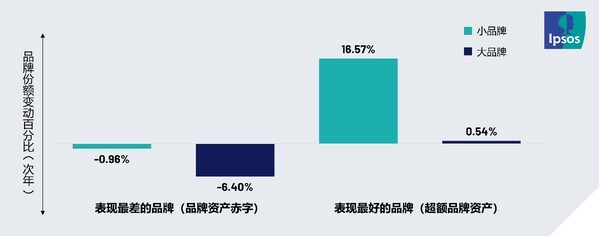 北京2026年4月2日 /美通社/ -- 在争夺消费者心智的战争中,游戏规则似乎早已内定。资金雄厚的大型成熟品牌占据主导,而中小品牌只能在夹缝中求生存。虽然小品牌在初始阶段存在渗透率劣势,但在消费者需求上并不一定落后。益普索数据显示,小品牌的「超额品牌资产」或许能带来更大动能。小品牌无法硬刚预算,它们需要的是超乎寻常的渴望度。
